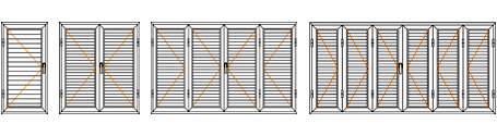 La apertura es igual que en los sistemas abatibles (o practicables), barriendo la hoja en su trayectoria de apertura.